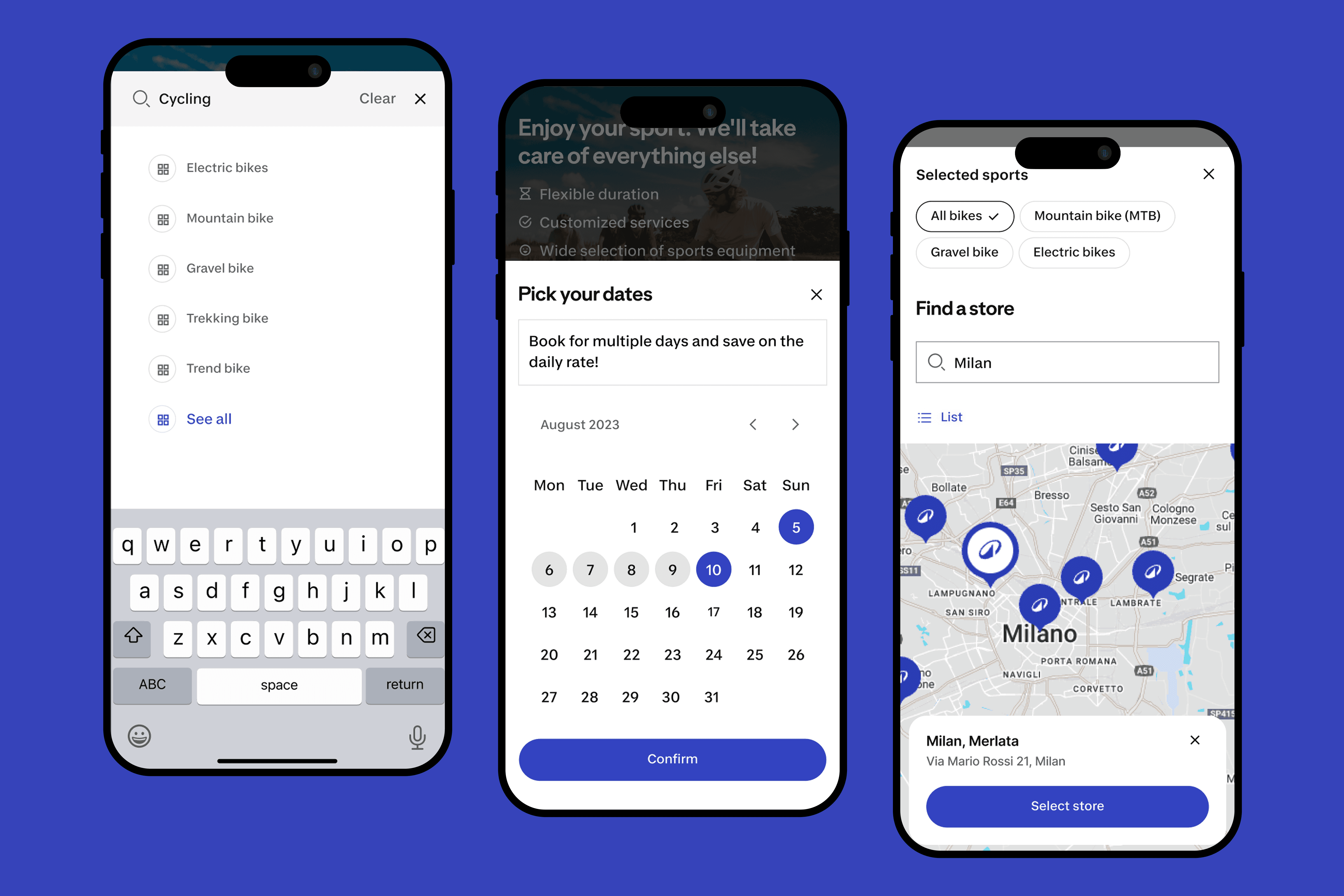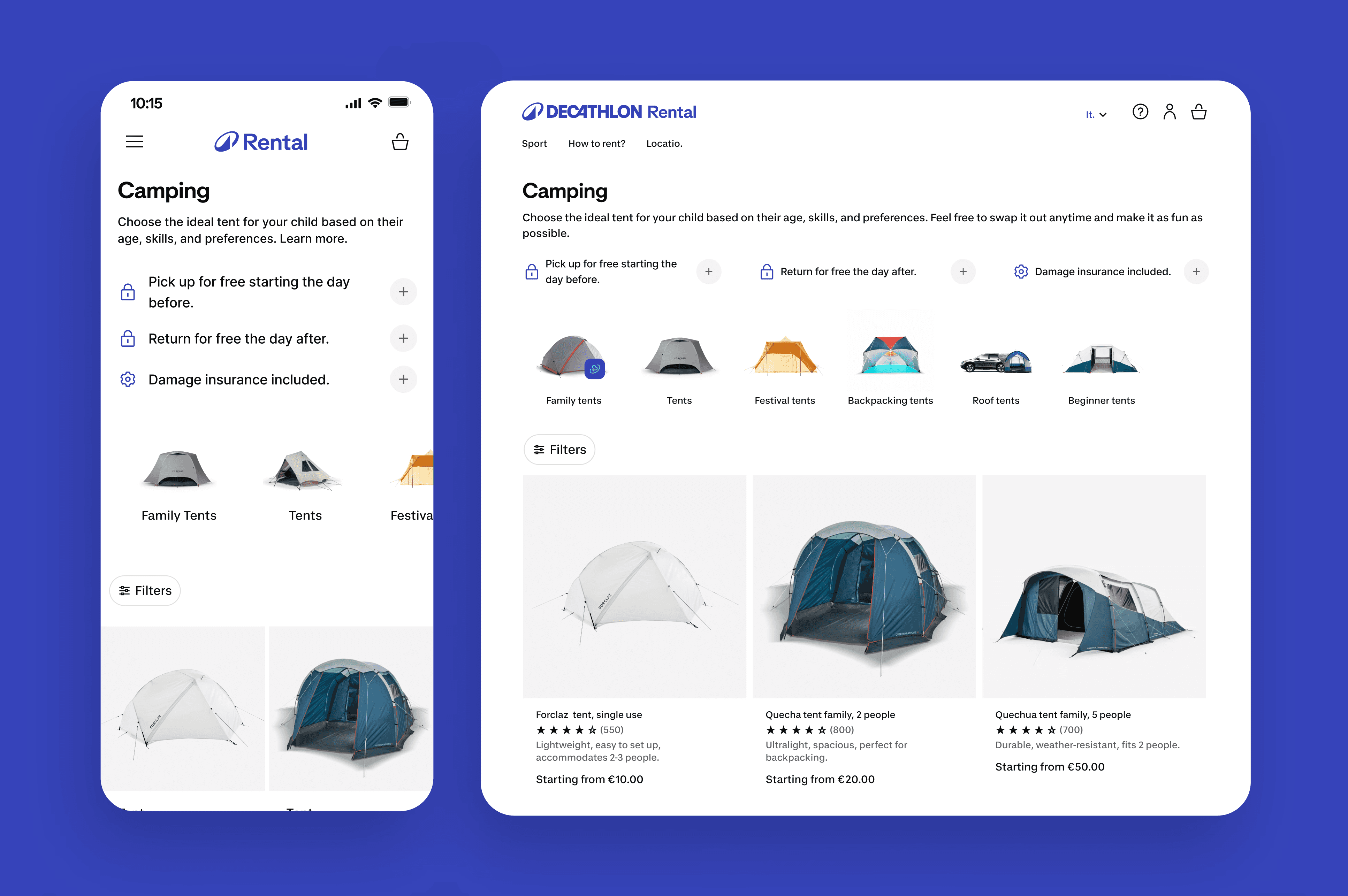 A UX/UI project focused on redesigning the search flow and listing pages of Decathlon Rent, aligning them with the new design system and improving product discoverability through a more intuitive search experience.